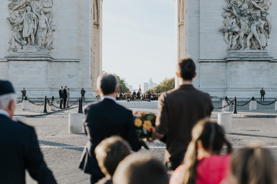 After walking up part of the Champs-Élysées, the ESSEC Alumni procession gathered around the Tomb of the Unknown Soldier for a solemn and moving moment, marked by readings, the Last Post, La Marseillaise and the Hymn to the Unknown Soldier.
