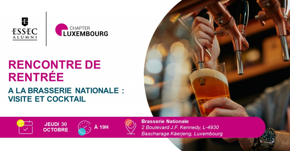Nous avons le plaisir de vous convier à notre prochaine rencontre, qui se tiendra le jeudi 30 octobre 2025 à la Brasserie Nationale (2 Boulevard J.F. Kennedy, L-4930 Bascharage Käerjeng, Luxembourg).