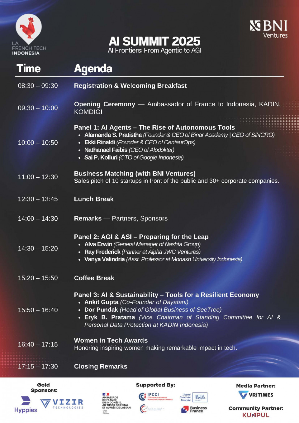 Mark your calendars for 𝟐𝟎 𝐍𝐨𝐯𝐞𝐦𝐛𝐞𝐫 𝟐𝟎𝟐𝟓 at Institut Français Indonesia Thamrin, Jakarta — a full day of networking, collaboration, and inspiration awaits at 𝐀𝐈 𝐒𝐮𝐦𝐦𝐢𝐭 𝟐𝟎𝟐𝟓.