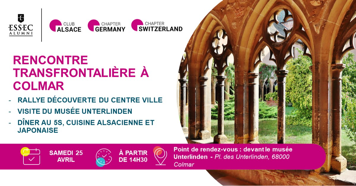 The ESSEC Alumni Alsace Club, the Chapter Switzerland and the Chapter Germany invite you to a gathering in the heart of Colmar.