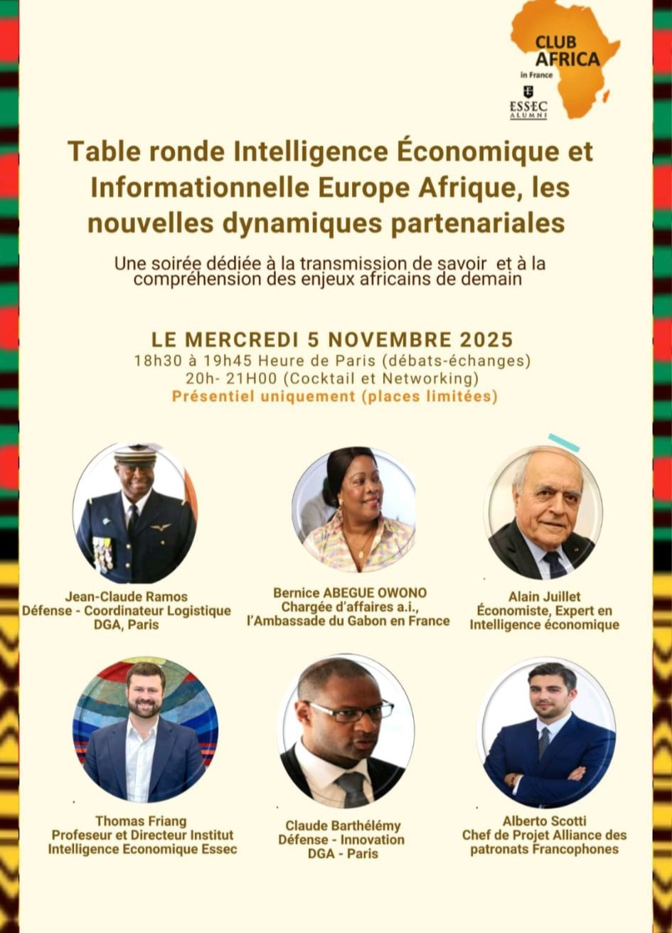 Le Club ESSEC Alumni Africa in France vous invite à une table ronde exceptionnelle dédiée aux nouvelles dynamiques de collaboration entre l’Europe et l’Afrique dans le domaine de l’intelligence économique et informationnelle.