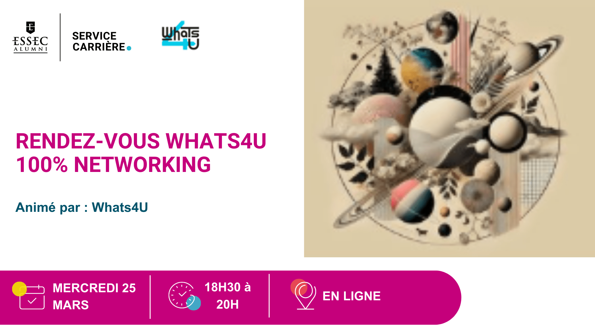 Parce qu’un réseau s’entretient tout au long de sa carrière, Whats4u, qui réunit 18 écoles d’ingénieurs et de management, te propose un Rendez-Vous 100% Networking mercredi 25 mars 2026, de 18h30 à 20h.