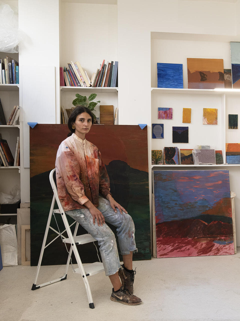 Christine Safa dans son atelier, Paris, 2022. Photographe : Fabrice Gibert © Christine Safa / Courtesy Galerie Lelong & Co.