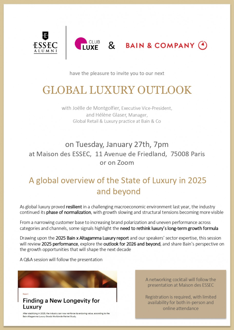 The ESSEC Alumni Luxe Club invites you on Tuesday, January 27th to its next conference at the Maison des ESSEC on the theme: