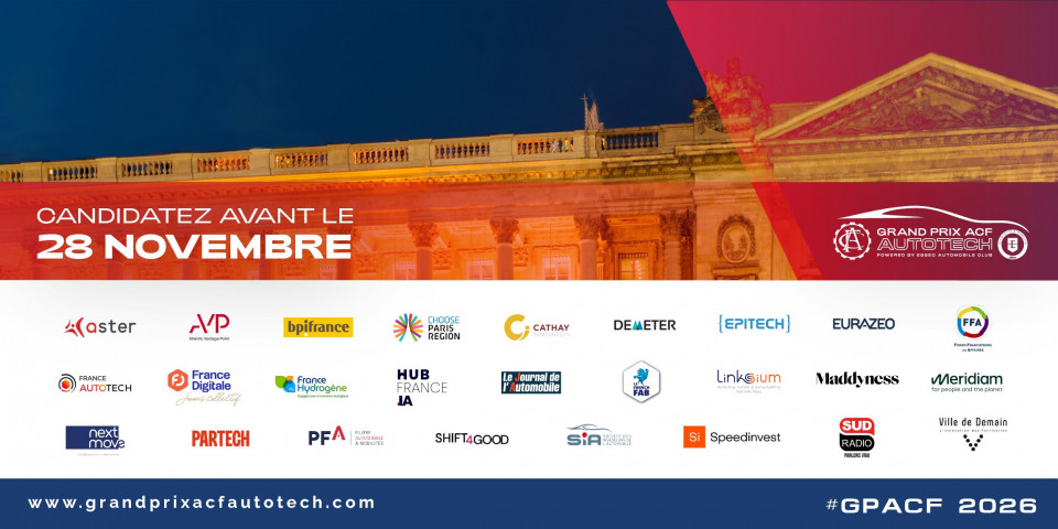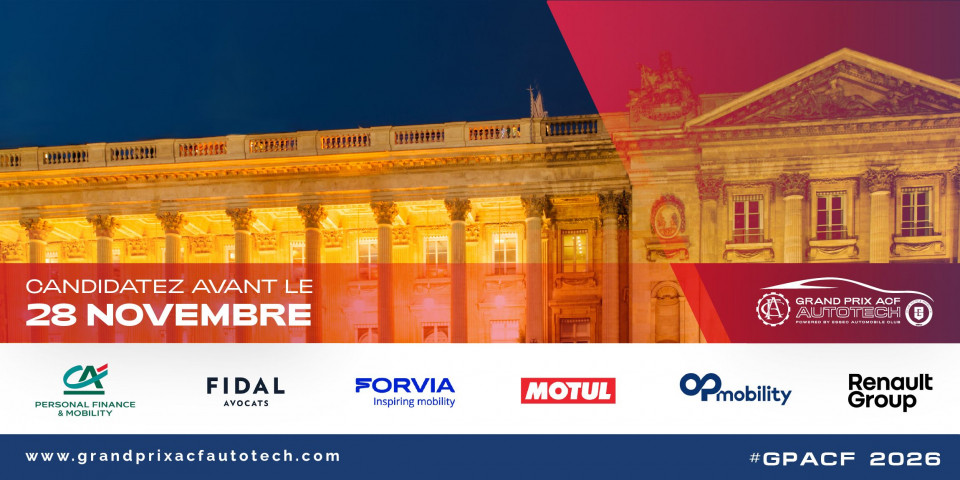 Après le succès des huit premières éditions, l’Automobile Club de France et le Club Automobile et Mobilité de l'ESSEC annoncent le lancement de la neuvième édition du Grand Prix ACF AutoTech, récompensant les startups françaises et internationales les plus innovantes dans le domaine.