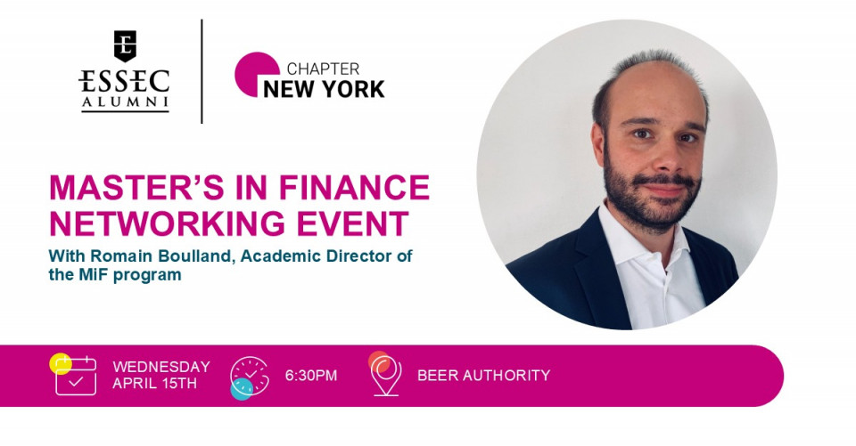 Join 60 students from the Masters in Finance program and the Academic Director of the program, Romain Boulland for a networking evening on Wednesday, April 15th in Manhattan.