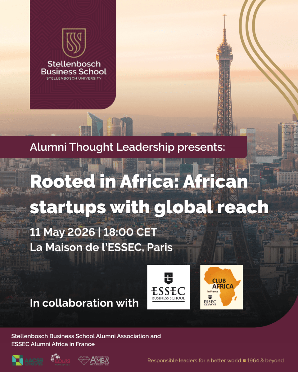 Book now to join an engaging Alumni Thought Leadership event hosted by the Stellenbosch Business School Alumni Association in collaboration with ESSEC Business School and ESSEC Alumni Africa in France.