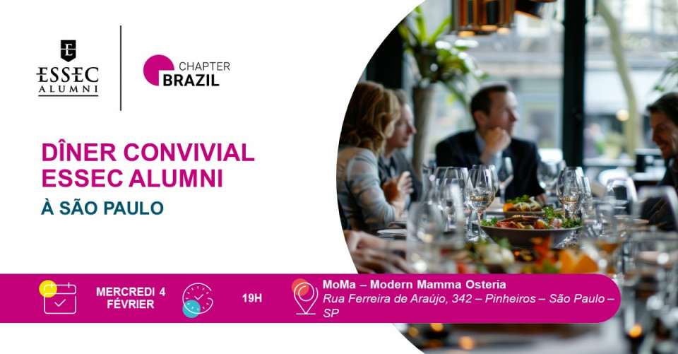📸 ESSEC Alumni pourra utiliser les photos et vidéos prises lors de cet événement dans ses différents supports de communication (brochures, newsletters, articles, magazine Reflets, médias sociaux, sites web, etc.) Si vous ne souhaitez pas être filmé ou photographié, merci de nous en informer par e-mail avant l'événement (florence.zheng@essec.edu).