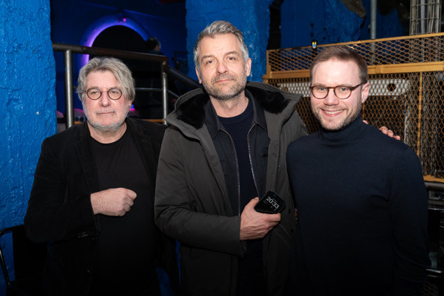 Photo de gauche à droite : Gérard Pont, Président des Francofolies de La Rochelle, Aurélien Binder, Président de RIVAJ Group (ex-Fimalac Entertainment), Jean-Victor Clérico, Directeur général du Moulin Rouge,