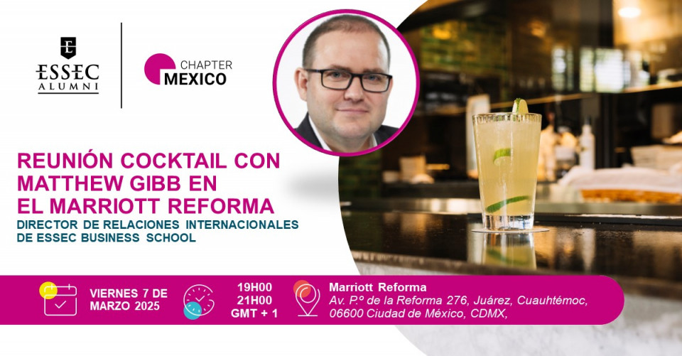 Tendremos el placer de dar la bienvenida a Matthew Gibb, Director de Relaciones Internacionales de ESSEC Business School, quién nos compartirá las últimas noticias del ESSEC, últimas tendencias, nuevos desarrollos, y el plan estratégico de la escuela para el futuro.